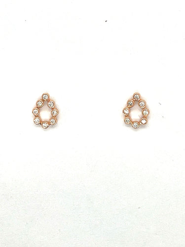 14K Rose Gold Smooth Bezel Set Diamond Open Pear Shape Studs
