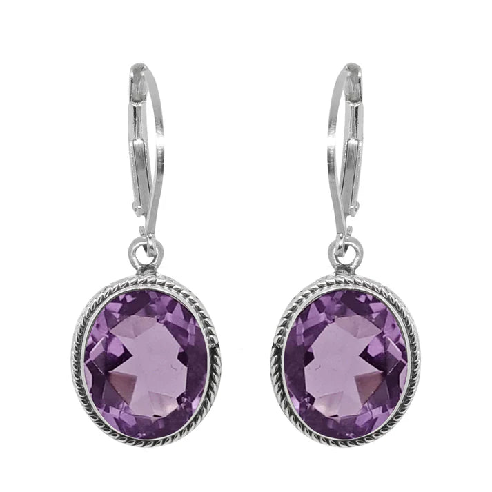 Luna SS Oval 7x9mm Gemstone Leverback Earrings, your choice of Amethyst or Blue Topaz.