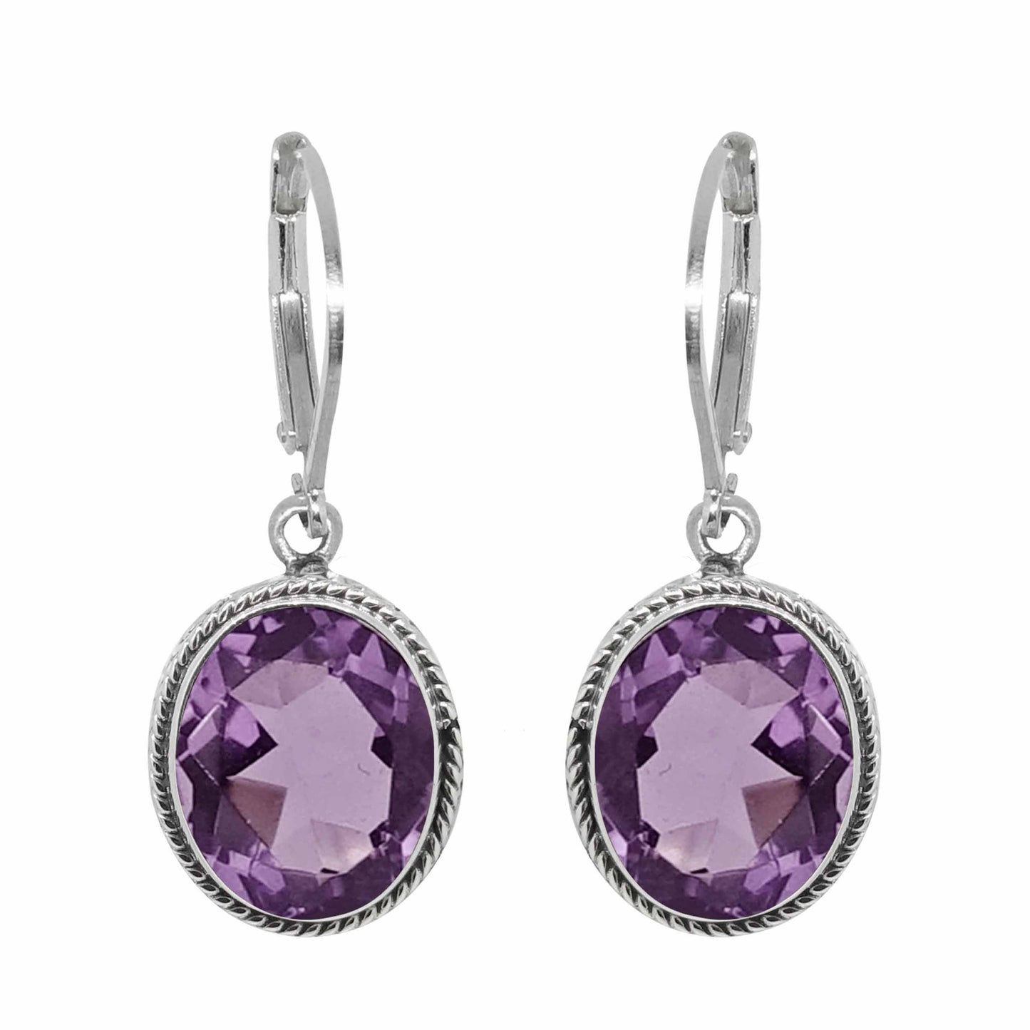Sterling Silver 10x8mm Oval Bezel Amethyst Dangle Earrings